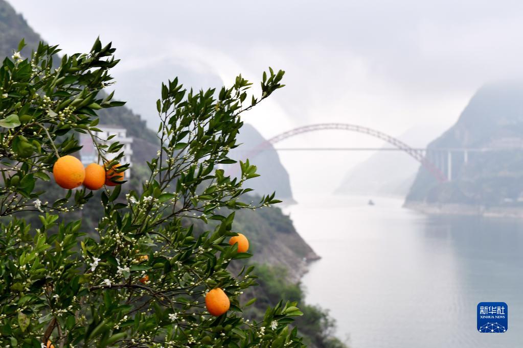 眼下,有“中國臍橙之鄉”美譽(yù)的三峽庫區湖北省秭歸縣長(cháng)江兩岸橙花盛開(kāi),晚熟臍橙掛滿(mǎn)枝頭,花果同樹(shù)的橙樹(shù)與峽江景觀(guān)相映如畫(huà)。