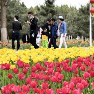 當日,北京永定河綠色港灣郁金香文化節在大興區北臧村鎮開(kāi)幕,100余萬(wàn)株各式花卉競相開(kāi)放,游客徘徊其間宛如游弋在七彩花海。