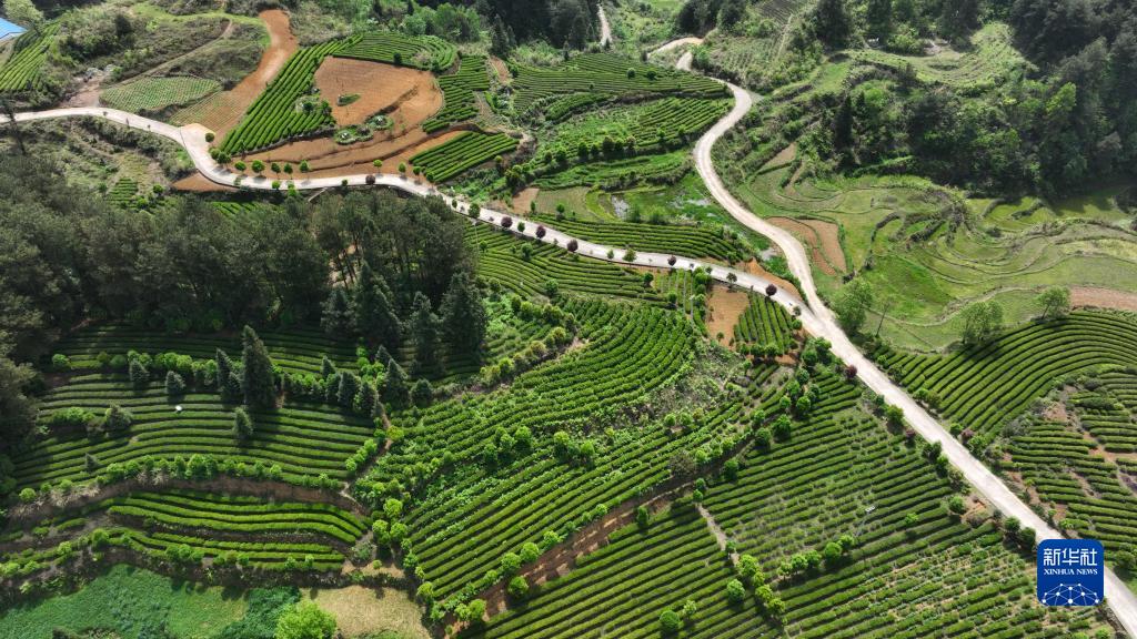 4月15日拍攝的貴州省開(kāi)陽(yáng)縣南龍鄉田坎村的茶園(無(wú)人機照片)。