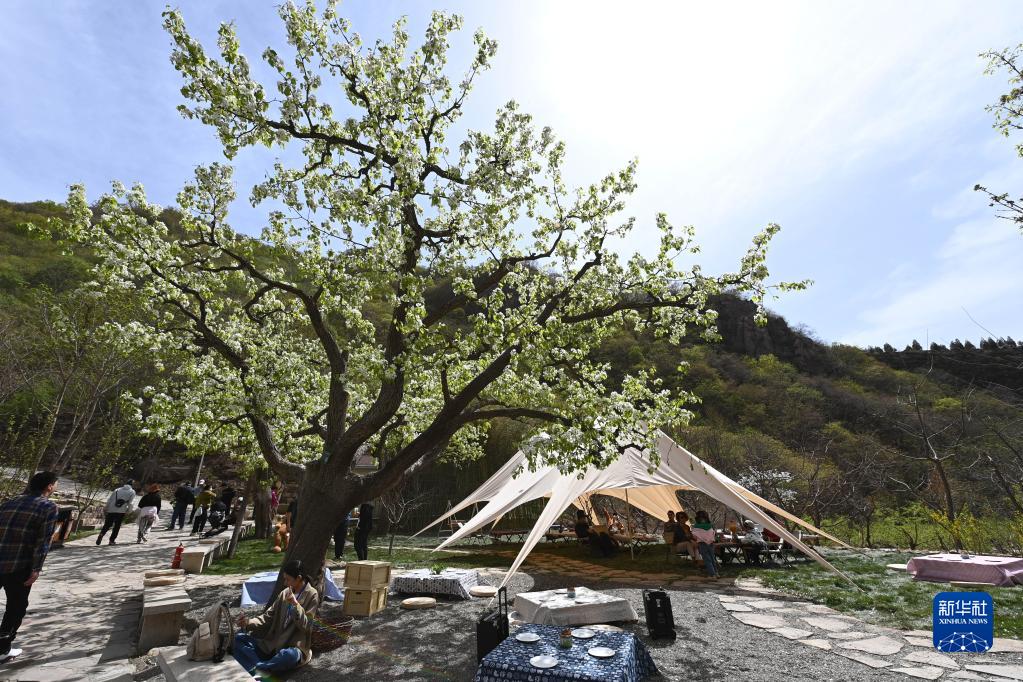 4月15日,游客在天津市薊州區梨木臺景區內游玩。