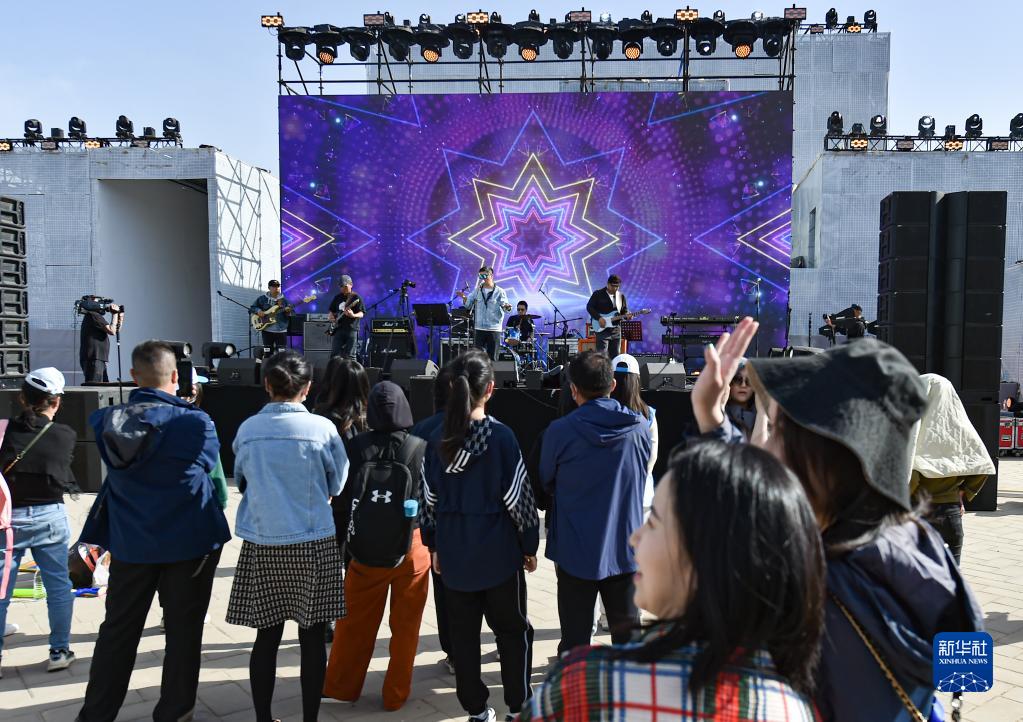 4月15日,游客在“2023下苑藝術(shù)生活季”活動(dòng)現場(chǎng)觀(guān)看樂(lè )隊演出。