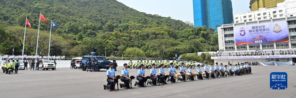 4月15日,在香港警察學(xué)院舉行的開(kāi)放日活動(dòng)上,警察樂(lè )隊、警隊護送組、警犬隊、反恐特勤隊等參與大匯演。新華社發(fā)(香港特區政府新聞處供圖)