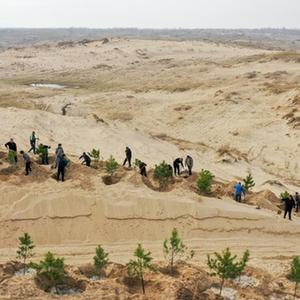 近日,在內蒙古通遼市科爾沁左翼后旗,治沙工人忙著(zhù)植樹(shù)造林,給科爾沁沙地披上“綠裝”??茽柷呱车貦M跨內蒙古、吉林、遼寧三省區,沙地面積7760萬(wàn)畝,在內蒙古通遼市境內占52.7%。近年來(lái),依托“三北”防護林、退耕還林、公益林保護等重點(diǎn)生態(tài)工程,內蒙古通遼市不斷加大植樹(shù)造林、草原修復和生態(tài)保護力度,科爾沁沙地生態(tài)環(huán)境得到改善。
