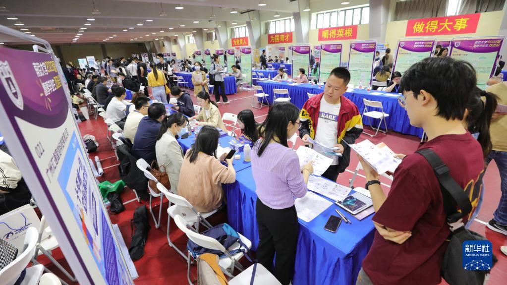 這是4月16日拍攝的南京大學(xué)2023屆畢業(yè)生春季雙選會(huì )現場(chǎng)。