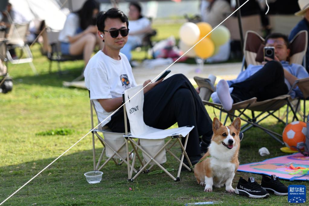 4月16日,市民在長(cháng)沙市開(kāi)福區湘江畔露營(yíng)休閑。