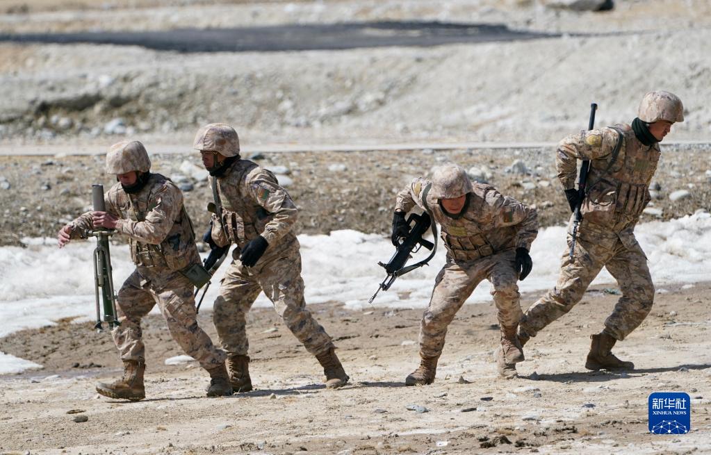 4月13日,邊防連戰士在進(jìn)行訓練。