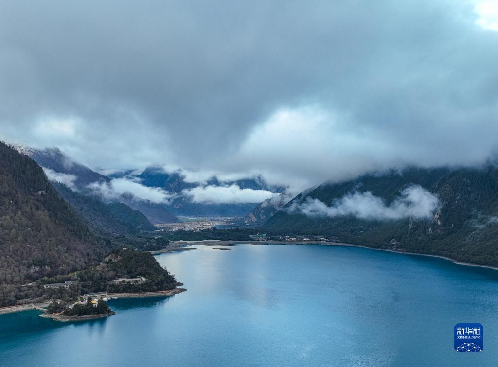 4月17日拍攝的巴松措(無(wú)人機照片)。