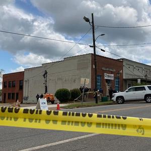 這是4月16日在美國亞拉巴馬州戴德維爾拍攝的槍擊事件現場(chǎng)。