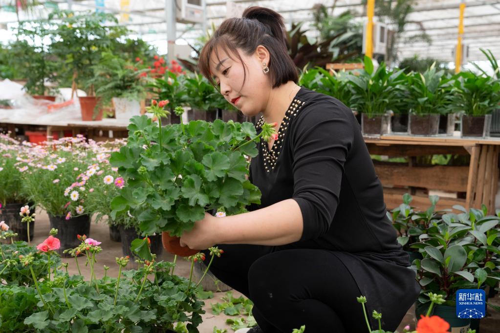 4月17日,在河北省廊坊市永清縣恒美國際花都,一名商戶(hù)在打理鮮花。