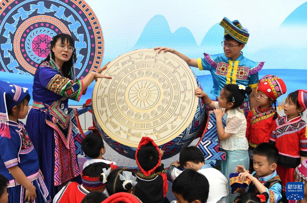 當日,廣西南寧市濱湖路小學(xué)舉行慶?!叭氯敝黝}教育活動(dòng)暨2023年青秀區民族團結進(jìn)步宣傳月啟動(dòng)儀式。隨著(zhù)傳統節日“壯族三月三”臨近,廣西各地陸續開(kāi)展豐富多彩的慶?;顒?dòng)。