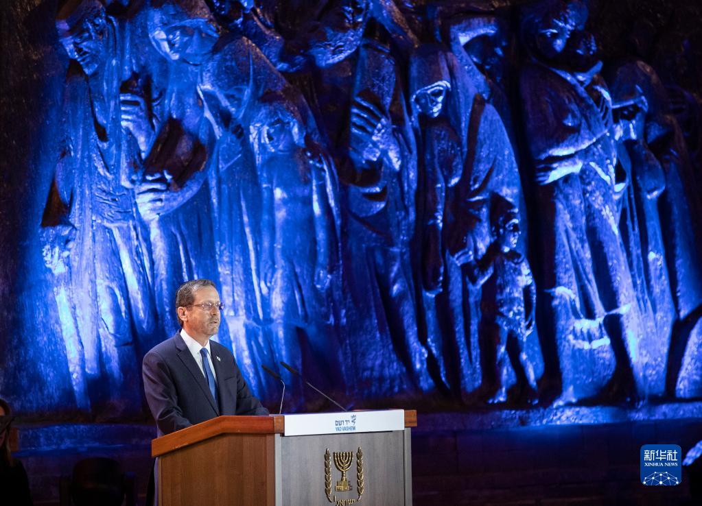 4月17日,以色列總統赫爾佐格在耶路撒冷舉行的大屠殺紀念日活動(dòng)上講話(huà)。