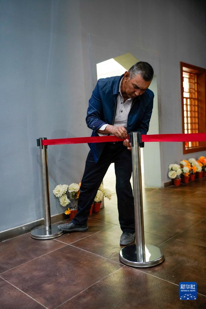 4月16日,艾尼瓦爾·艾買(mǎi)爾在新疆葉城烈士陵園內工作。
