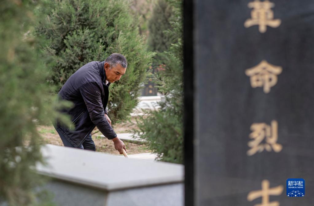 4月16日,艾尼瓦爾·艾買(mǎi)爾在葉城烈士陵園鋤草。