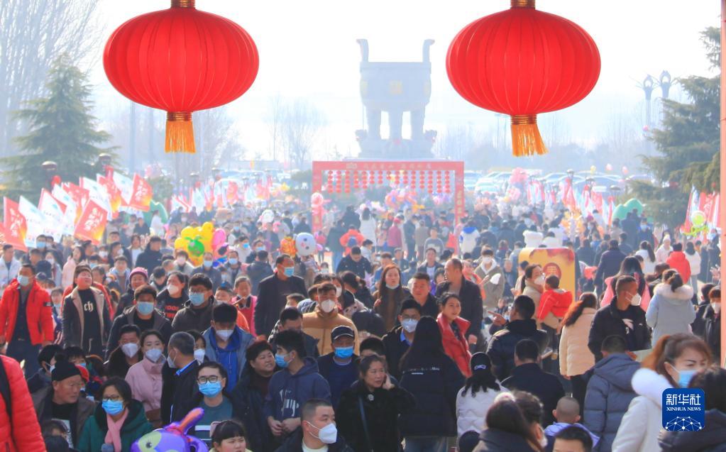 游人在山東省臨沂市沂蒙山龜蒙景區新春廟會(huì )上游玩(1月22日攝)。