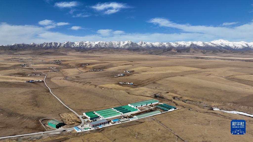 4月16日在青海省海北藏族自治州門(mén)源回族自治縣皇城蒙古族鄉拍攝的養殖畜棚(無(wú)人機照片)。
