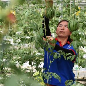 4月18日,河北省邢臺市南和區賈宋鎮一家現代農業(yè)園區工人在對西瓜進(jìn)行日常管理。