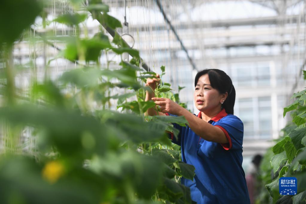 4月18日,河北省邢臺市南和區賈宋鎮一家現代農業(yè)園區工人在對黃瓜進(jìn)行日常管理。