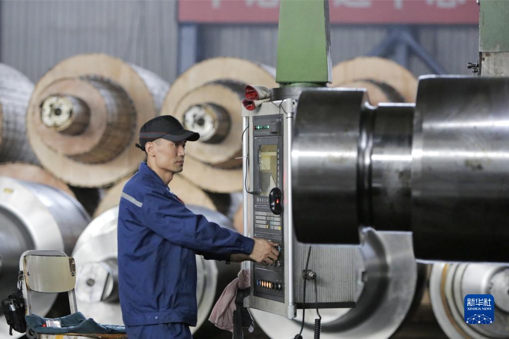 4月18日,工人在位于黑龍江省齊齊哈爾市的中國一重生產(chǎn)車(chē)間進(jìn)行生產(chǎn)作業(yè)。