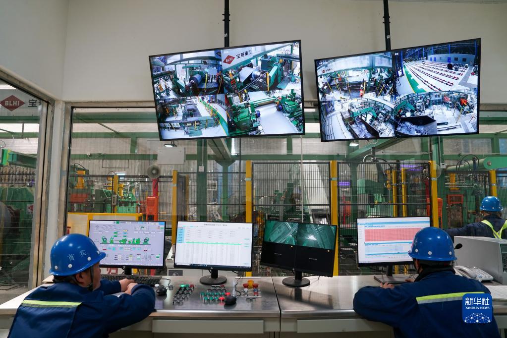 4月19日,工作人員在監控室內監測生產(chǎn)線(xiàn)運行情況。