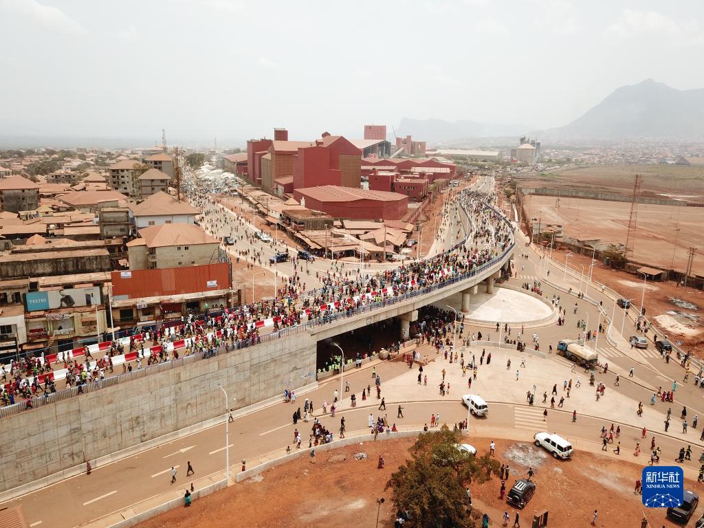 由中國企業(yè)承建的幾內亞科納克里卡格貝倫立交橋18日竣工通車(chē)。
