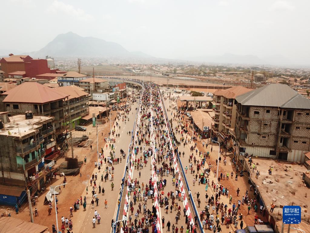 由中國企業(yè)承建的幾內亞科納克里卡格貝倫立交橋18日竣工通車(chē)。