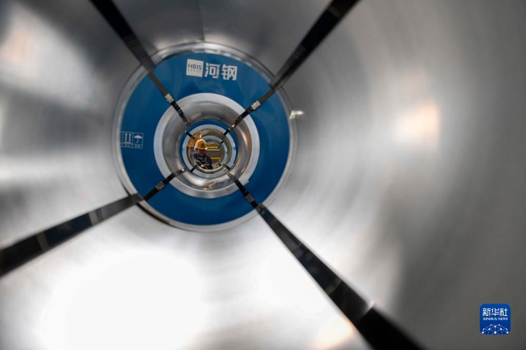 4月19日,在河北雙灤一家釩鈦新材料企業(yè)冷軋產(chǎn)品車(chē)間,工人在檢查冷軋鍍鋅板質(zhì)量。