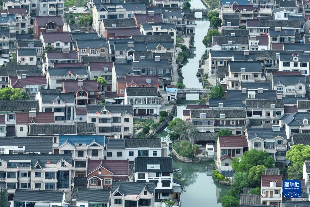 4月19日拍攝的開(kāi)弦弓村村貌(無(wú)人機照片)。