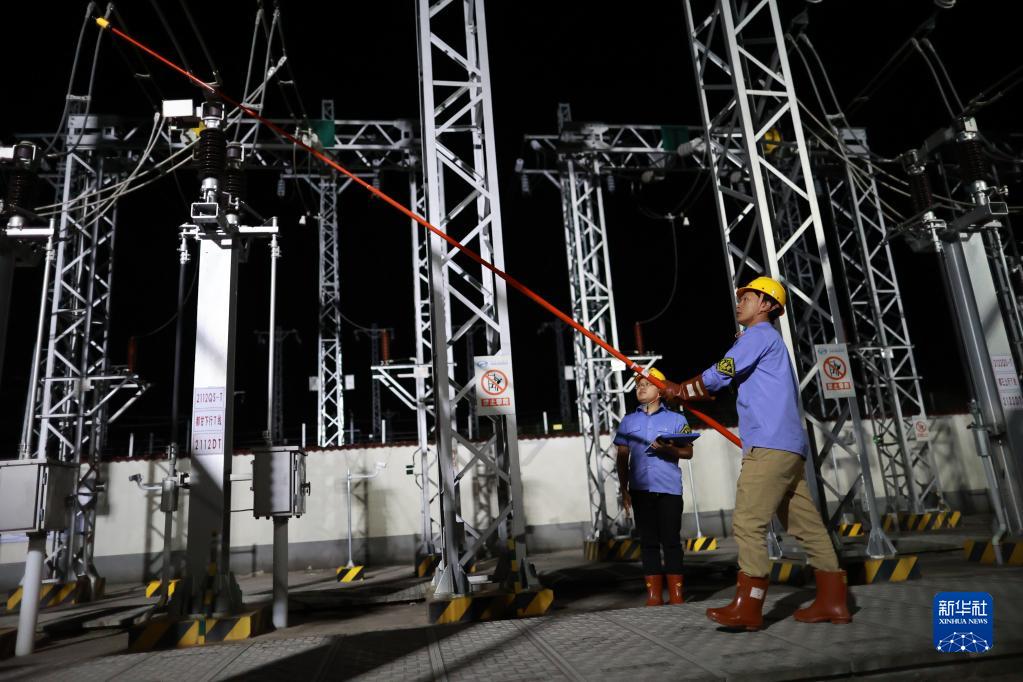 4月19日,貴陽(yáng)供電段工作人員在都勻東站變電所進(jìn)行驗電操作。