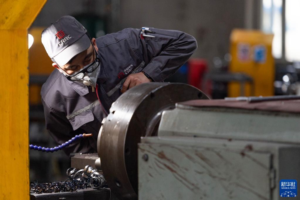 4月19日,在中車(chē)齊車(chē)公司的生產(chǎn)車(chē)間,工人在進(jìn)行生產(chǎn)作業(yè)。