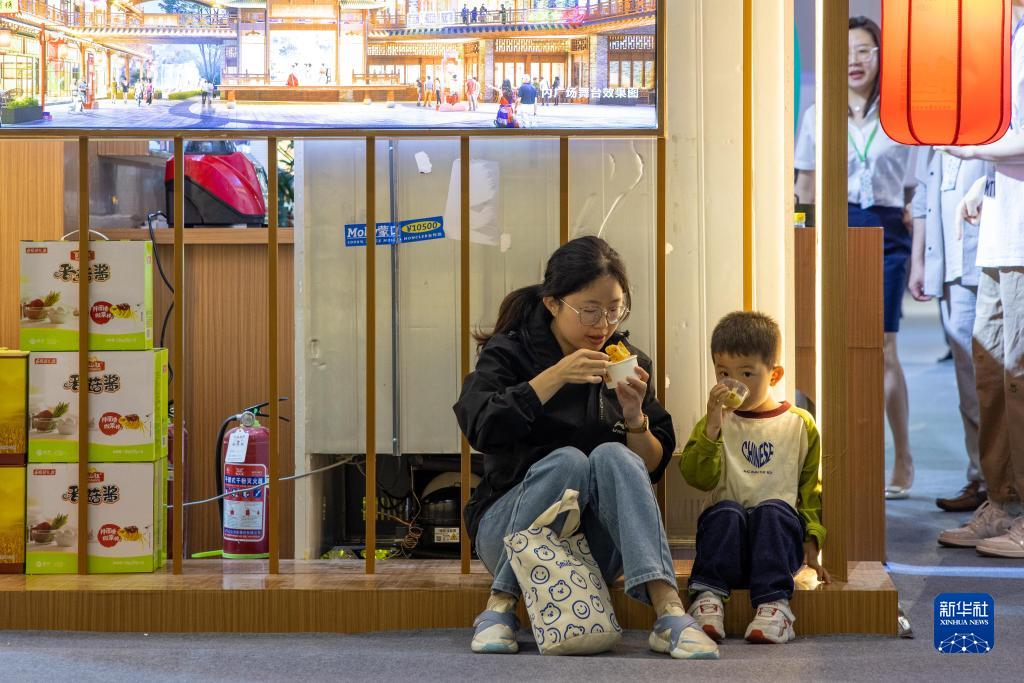4月20日,一對母子在“味美浙江”餐飲消費歡樂(lè )季現場(chǎng)品嘗美食。