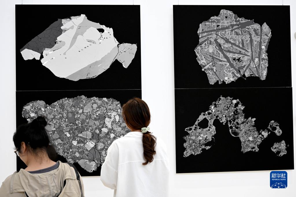 4月19日,觀(guān)眾在展覽上觀(guān)看月壤顆粒掃描電子顯微鏡背散射全景照片。