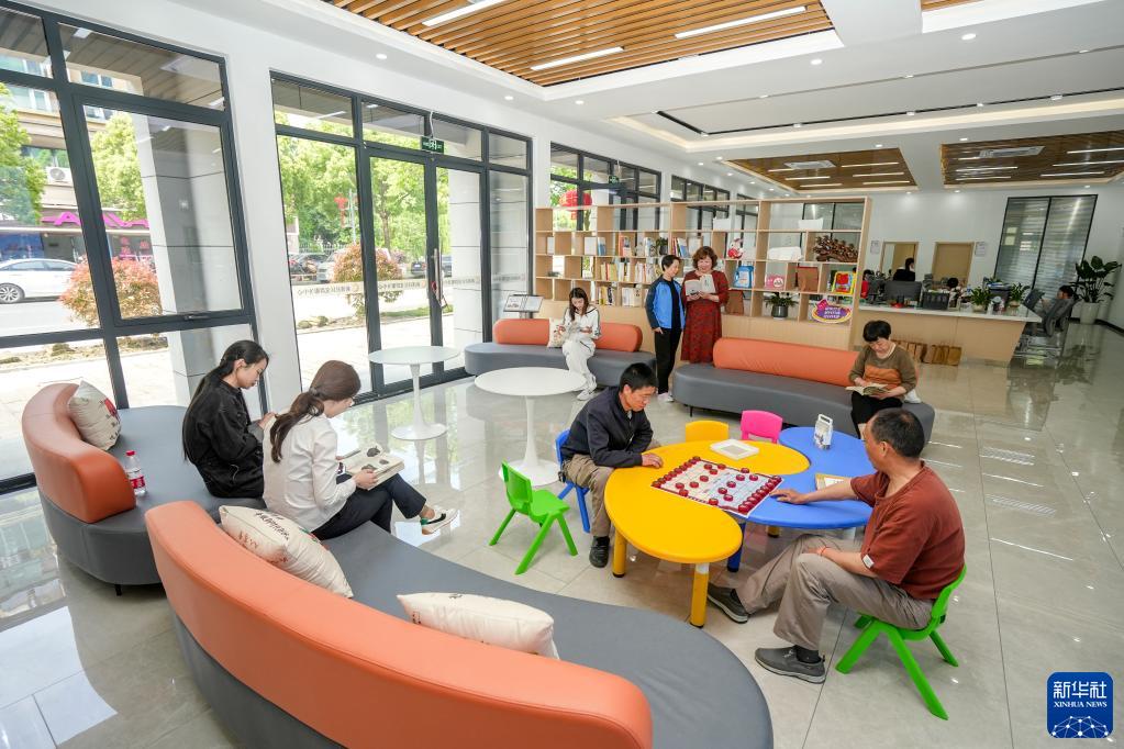 4月20日,在湖州市長(cháng)興縣太湖街道新溪未來(lái)社區,社區居民在共享會(huì )客廳內進(jìn)行休閑活動(dòng)。