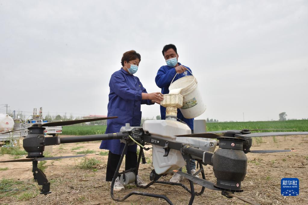4月20日,張戰強和妻子蘇麗華把農藥倒入植保無(wú)人機。
