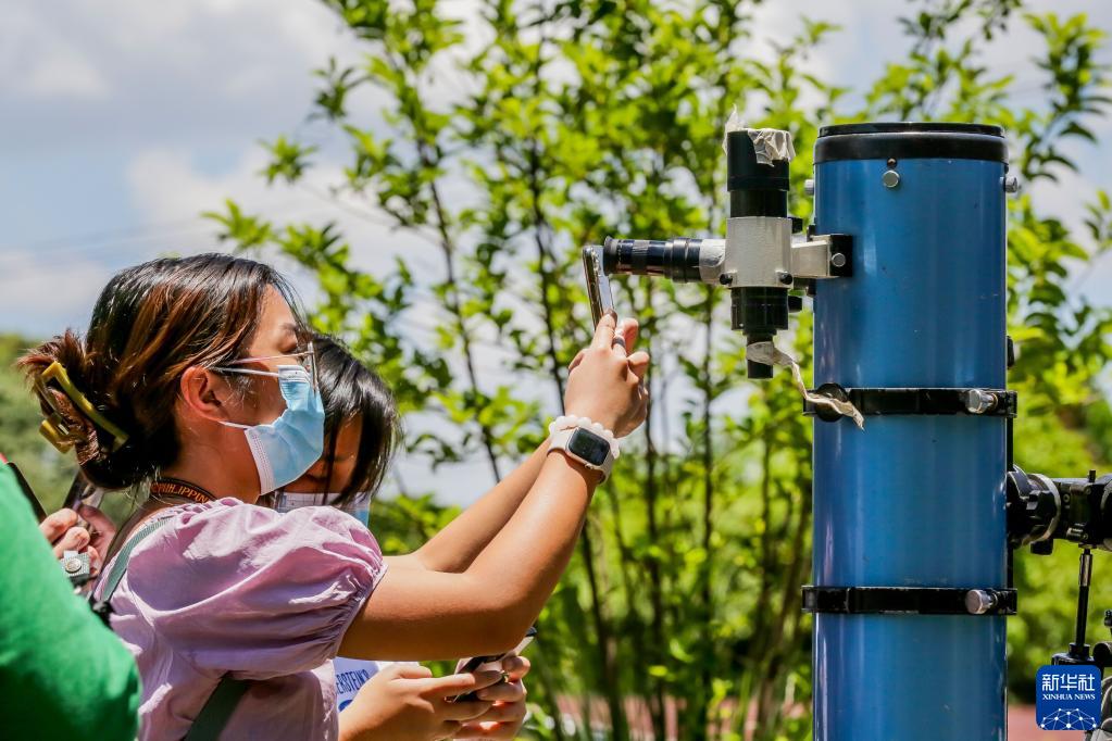4月20日,人們在菲律賓奎松市觀(guān)測日食。