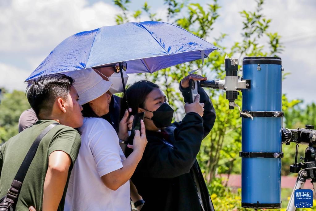 4月20日,人們在菲律賓奎松市觀(guān)測日食。