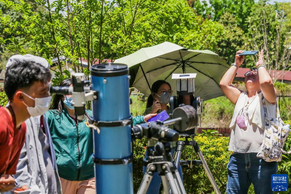 4月20日,人們在菲律賓奎松市觀(guān)測日食。
