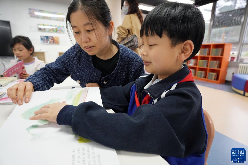 4月20日,盲童在“閱讀點(diǎn)亮你我”活動(dòng)上誦讀明盲對照繪本。