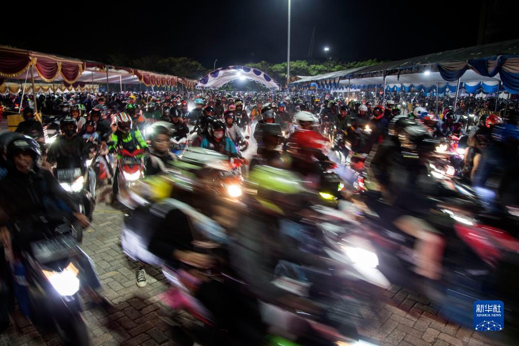 4月19日,騎摩托車(chē)返鄉的民眾在印度尼西亞萬(wàn)丹省芝勒貢登上輪渡。