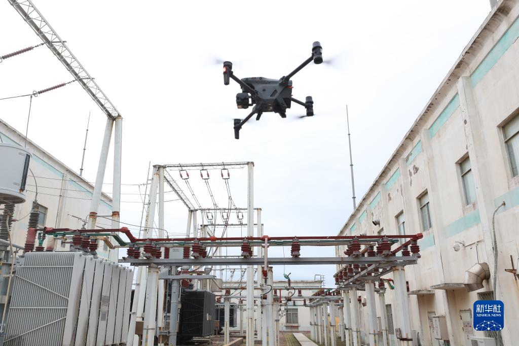 4月20日,無(wú)人機在福建平潭前進(jìn)變電站附近開(kāi)展自主巡檢作業(yè)。