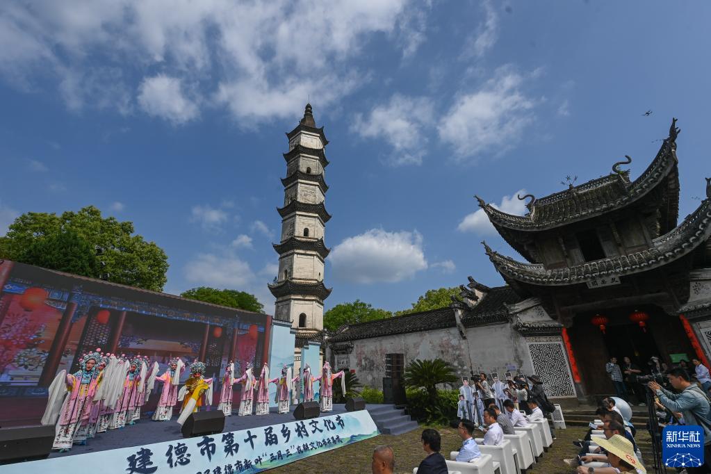 當日,以“非遺傳承、三地共富”為主題的浙江省建德市第十屆鄉村文化節暨2023建德市新葉“三月三”農耕文化節在建德市大慈巖鎮新葉古村開(kāi)幕?,F場(chǎng)舉行了“龍游硬頭獅子”“嚴州蝦燈”“李村抬閣”及昆曲等10余項非遺文化展演。