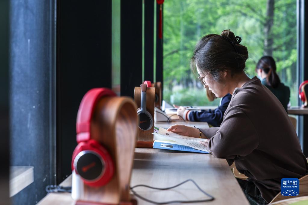 讀者在張家港市益空間·湖畔書(shū)房閱讀(4月20日攝)。