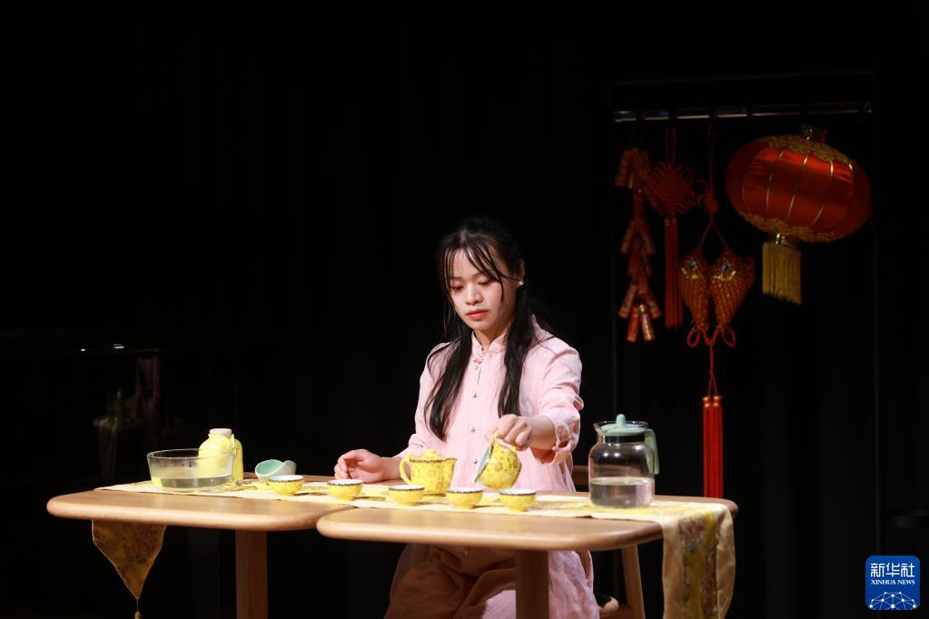 4月20日,在斯洛文尼亞盧布爾雅那,一名盧布爾雅那大學(xué)孔子學(xué)院的教師在聯(lián)合國中文日慶?;顒?dòng)上展示茶藝。