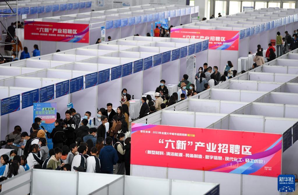 當日,“職引未來(lái)”2023年全國大中城市巡回招聘(銀川站)活動(dòng)在銀川國際會(huì )展中心舉行,活動(dòng)現場(chǎng)吸引來(lái)自陜西、福建、內蒙古等地500余家用人單位參加,提供來(lái)自新材料、清潔能源、數字信息、文化旅游、電子商務(wù)等行業(yè)的工作崗位。