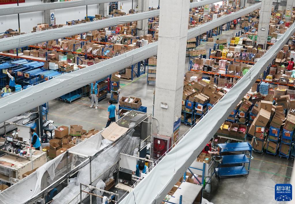 4月21日,員工在位于南京空港經(jīng)濟開(kāi)發(fā)區(江寧)一家企業(yè)的商超倉內忙碌。