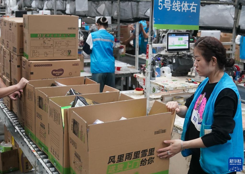4月21日,員工在位于南京空港經(jīng)濟開(kāi)發(fā)區(江寧)一家企業(yè)的商超倉內忙碌。