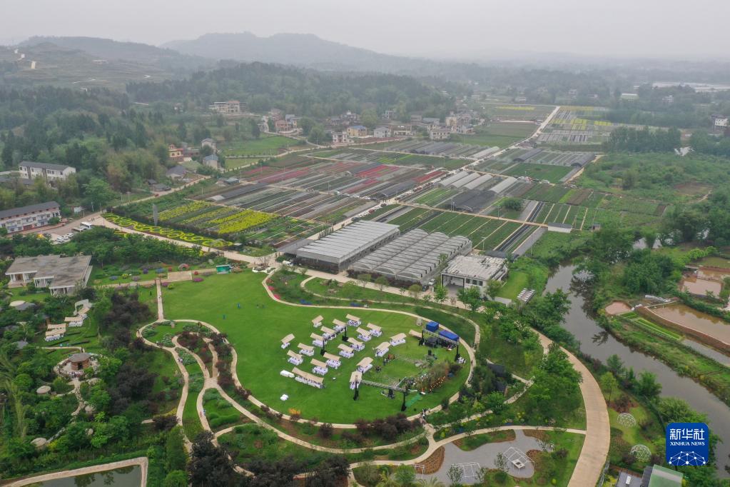 這是4月21日拍攝的位于重慶市大足區雍溪鎮的天華百卉園花卉種植基地(無(wú)人機照片)。