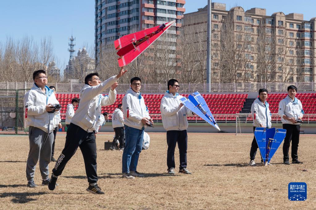 4月22日,在哈爾濱工業(yè)大學(xué)體育場(chǎng),航模協(xié)會(huì )的學(xué)生在拋飛航模。