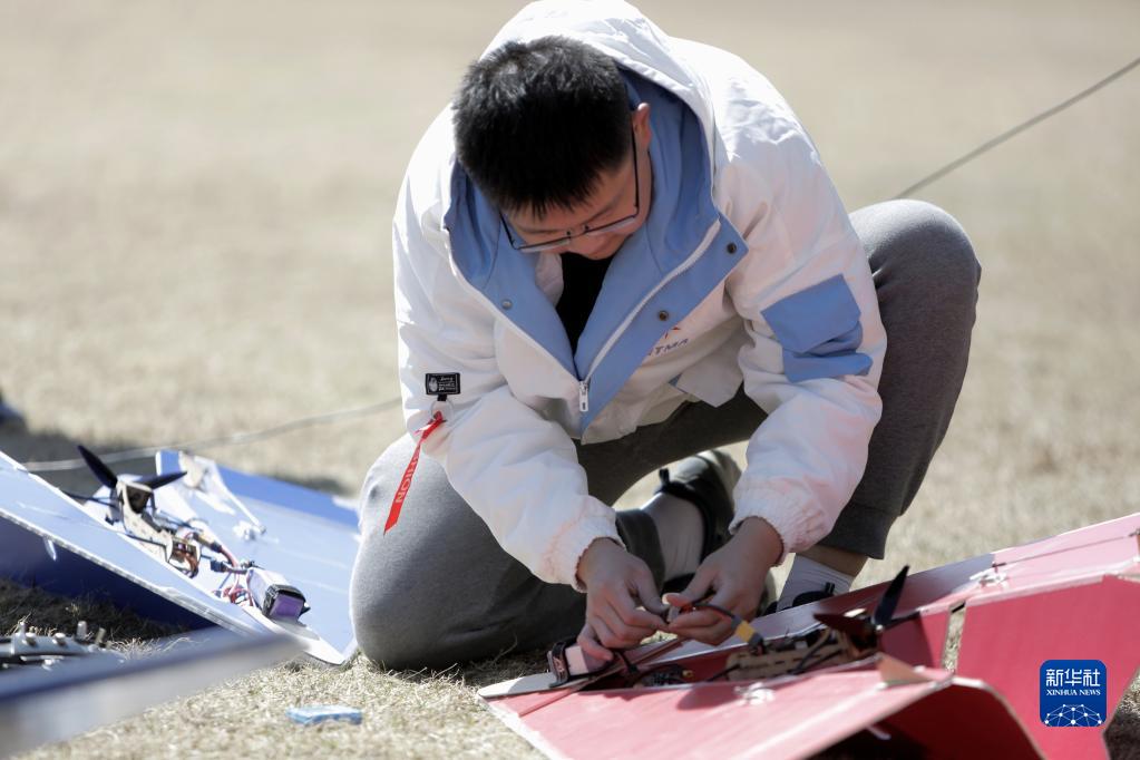 4月22日,在哈爾濱工業(yè)大學(xué)體育場(chǎng),航模協(xié)會(huì )的學(xué)生在航模飛行表演前進(jìn)行調試。