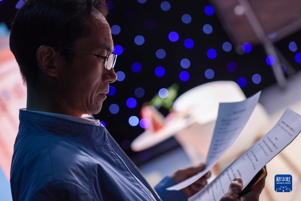 4月12日,在中國教育電視臺一處演播室,朱彥軍在節目錄制前進(jìn)行最后的準備。新華社記者 劉金海 攝