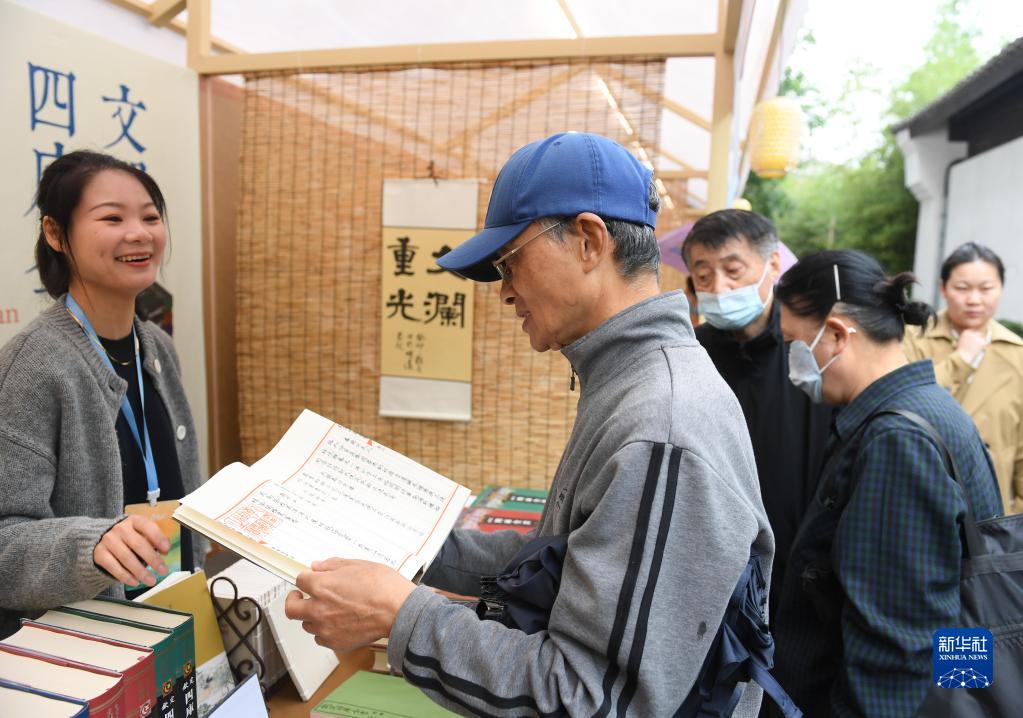 4月23日,在浙江杭州,人們在匯集了數十家民營(yíng)書(shū)店和出版社的“宋韻書(shū)街”參觀(guān)選購。